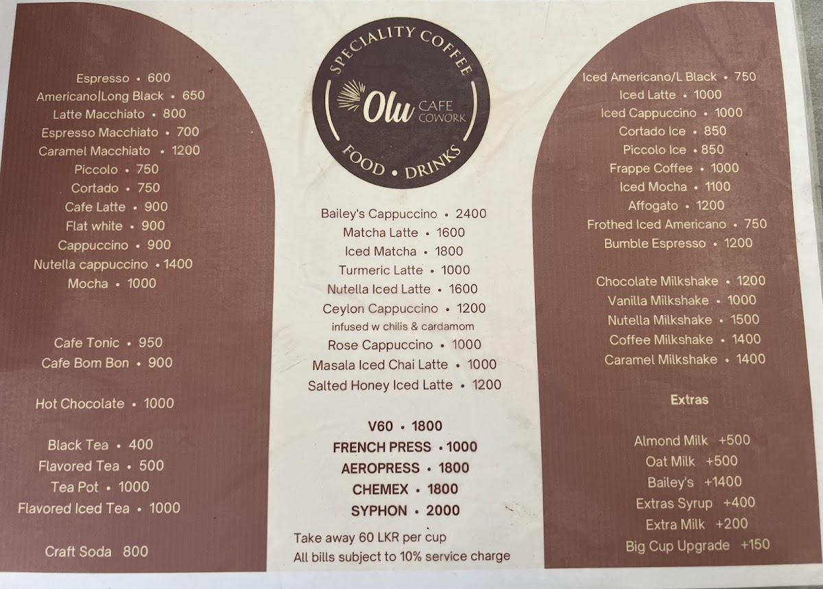 Welcome to OLU Garden Cafe, a serene retreat nestled in Unawatuna, Sri Lanka, just moments from the beach at 159 Devala Rd. This charming cafe is a haven for coffee aficionados and casual diners alike. With a focus on exceptional specialty coffee, many patrons rave about the skilled brewing techniques, from aromatic pour-overs to rich lattes. The warm and welcoming staff ensure a delightful experience, offering both service and engaging conversation.